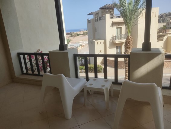 This charming studio apartment, covering 55.96 square meters, features a cozy balcony with a partial sea view. The open-plan design maximizes space and light, creating a welcoming atmosphere. Perfect for singles or couples, this studio offers a comfortable and stylish living experience with the added bonus of enjoying the Red Sea scenery from your own balcony.